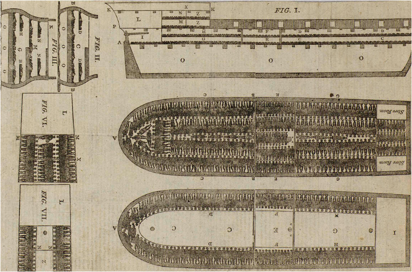 Image above: Slave ship Brooks active in Liverpool in the late 18th Century. Drawing commissioned by abolitionists in 1789.